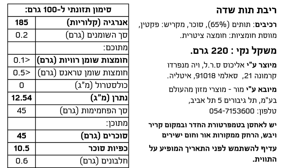 מכילה רכיבים טבעיים – ללא צבעי מאכל או חומרים משמרים.